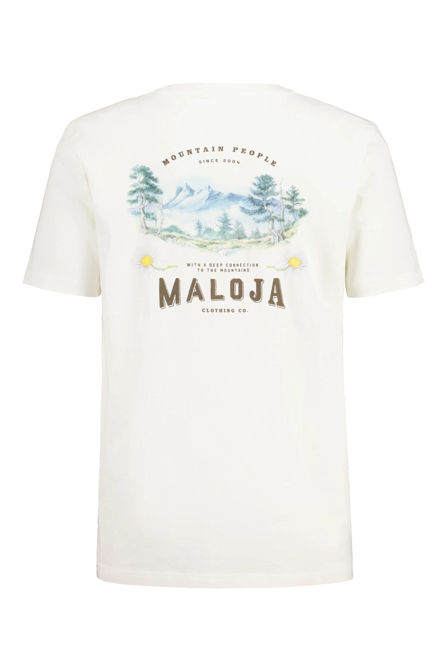 Das maloja BrandhornM ist ein lässiges T-Shirt aus BioBaumwolle. Die Vorderseite ist schlicht einfarbig gehalten, die Rückseite trägt einen grossen Bilddruck mit maloja Logo.