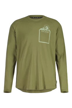 Das lässig geschnittene Langarm Shirt maloja LatemarM passt bei allen Gelegenheiten. Das Shirt ist mit einem Rundausschnitt gearbeitet und hat ein kleines maloja Logo Patch. Die aufgenähte Brusttasche ist durch einen Rundum Druck hervorgehoben. Natürlich ist LatemarM aus weicher BioBaumwolle.