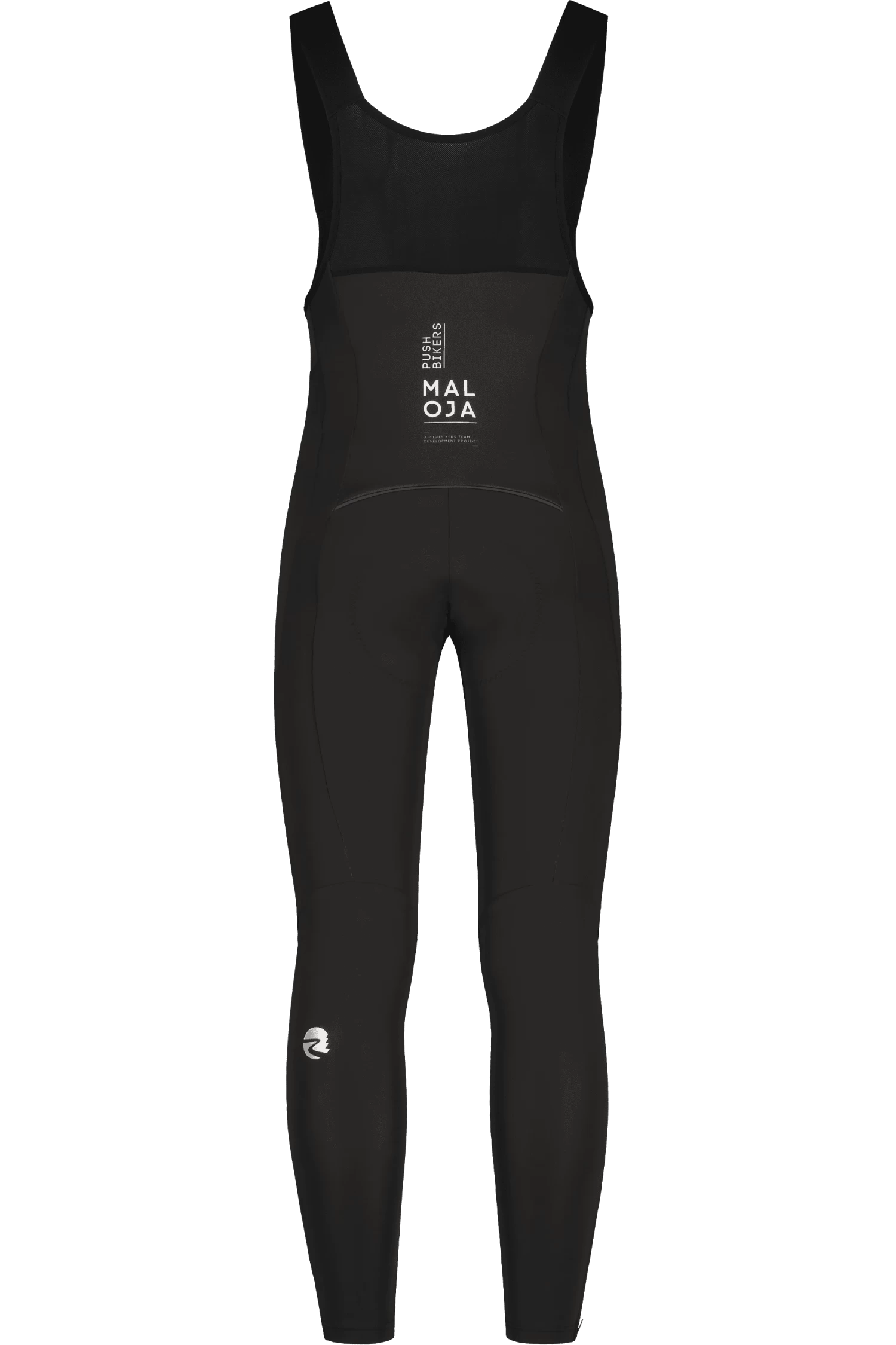 Warme, eng geschnittene lange Bike-Trägerhose des Maloja Pushbikers-Teams aus recycelten Materialien